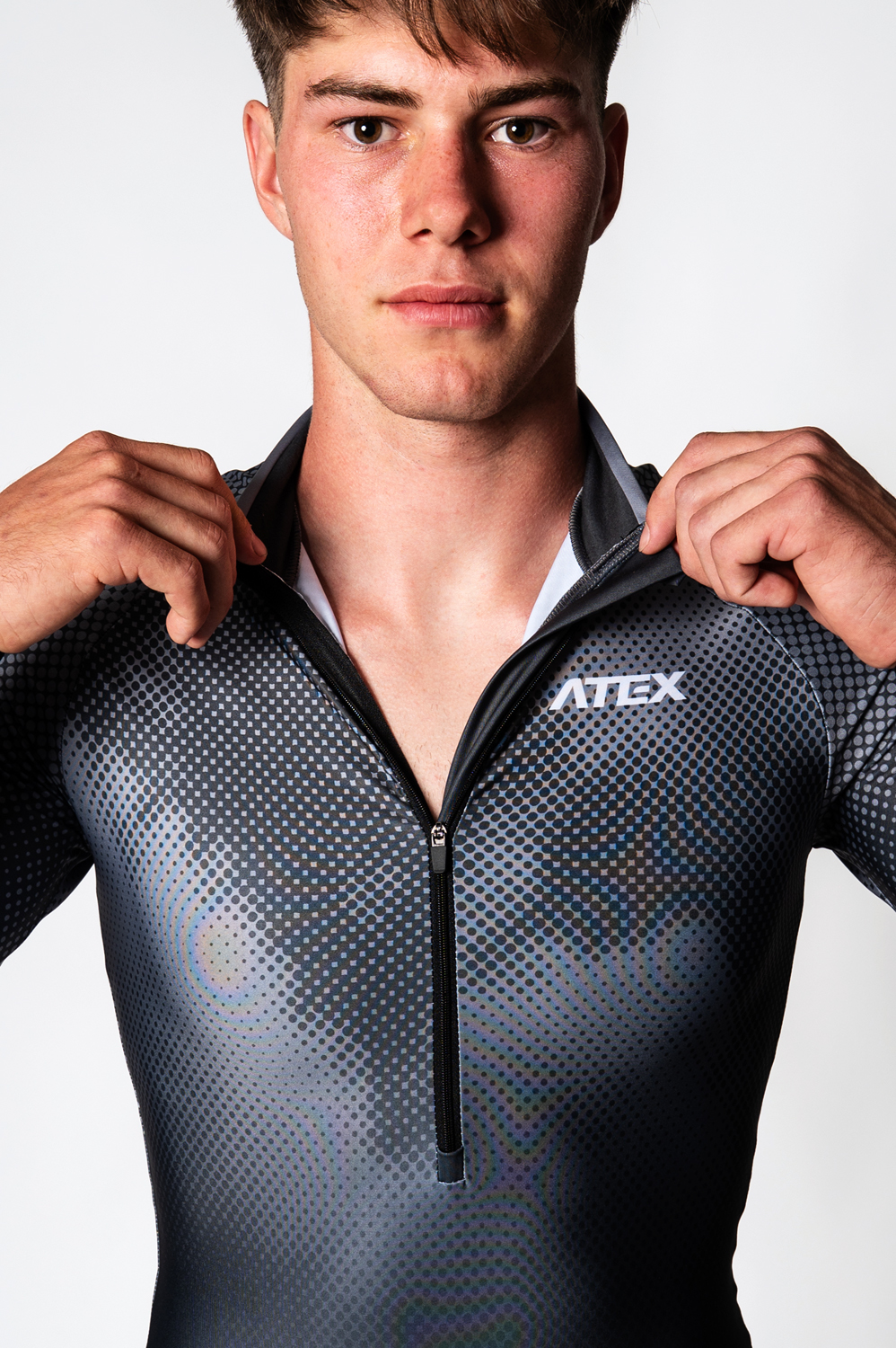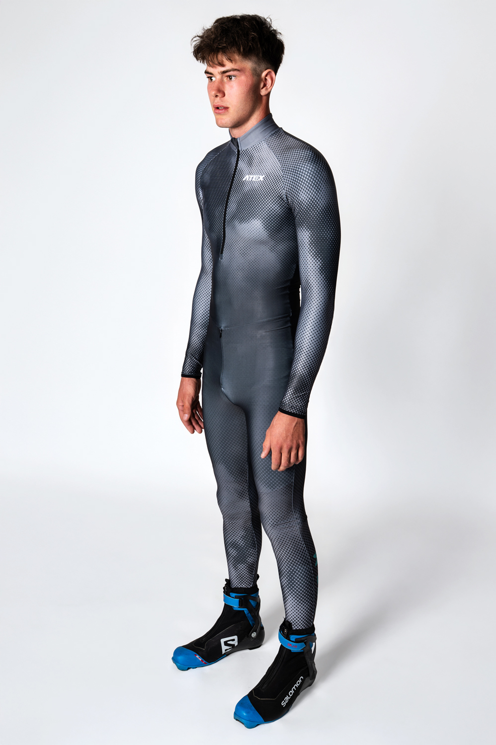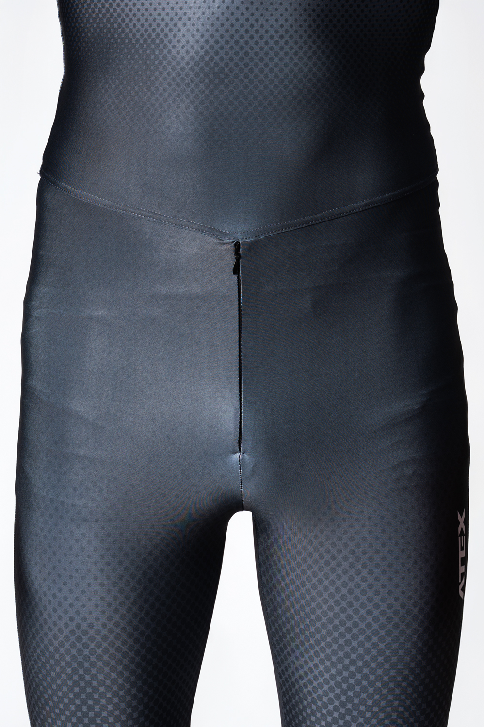 One-piece running suit made from stretchy fabric Espan grit that offers light compression.