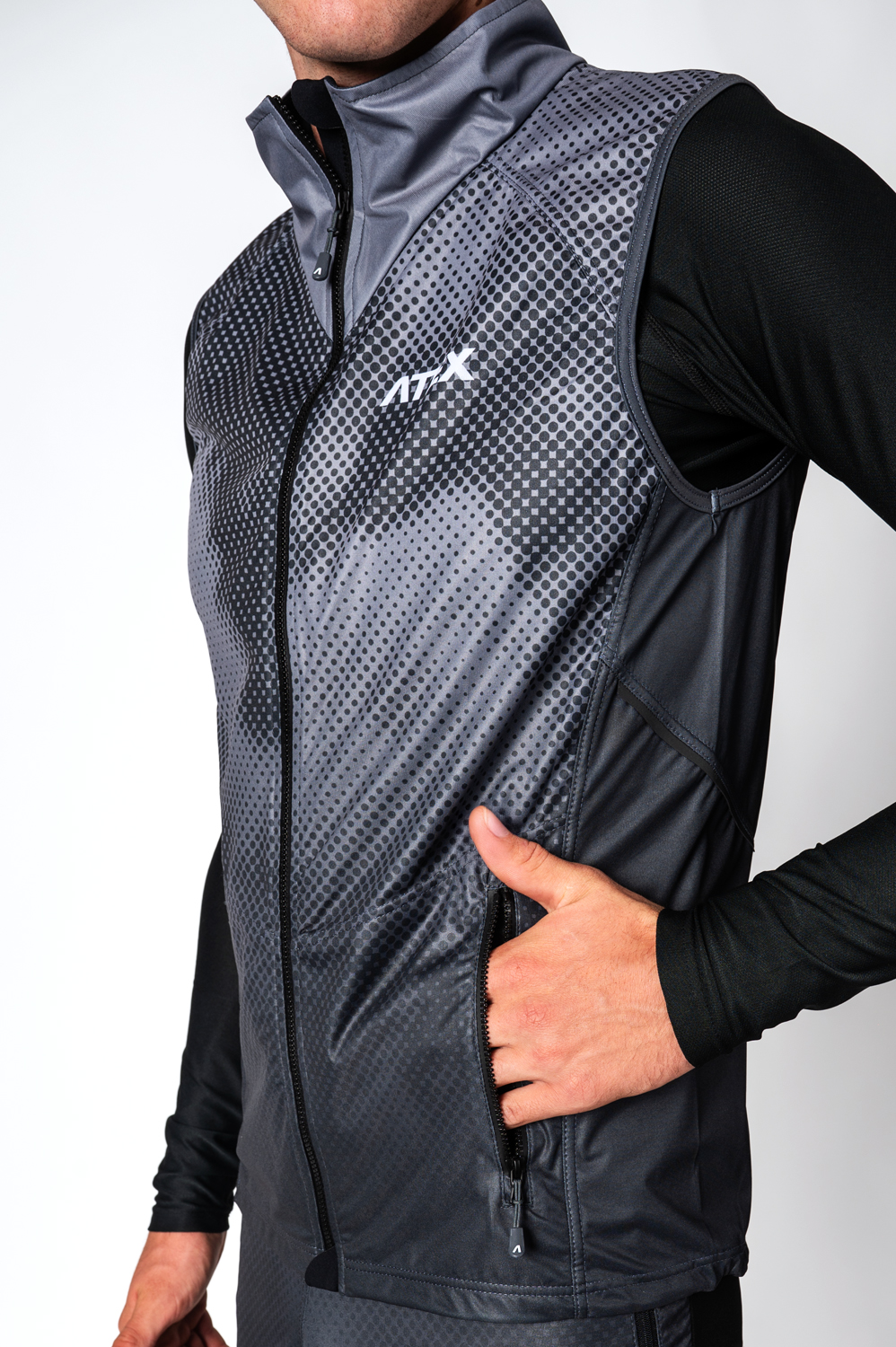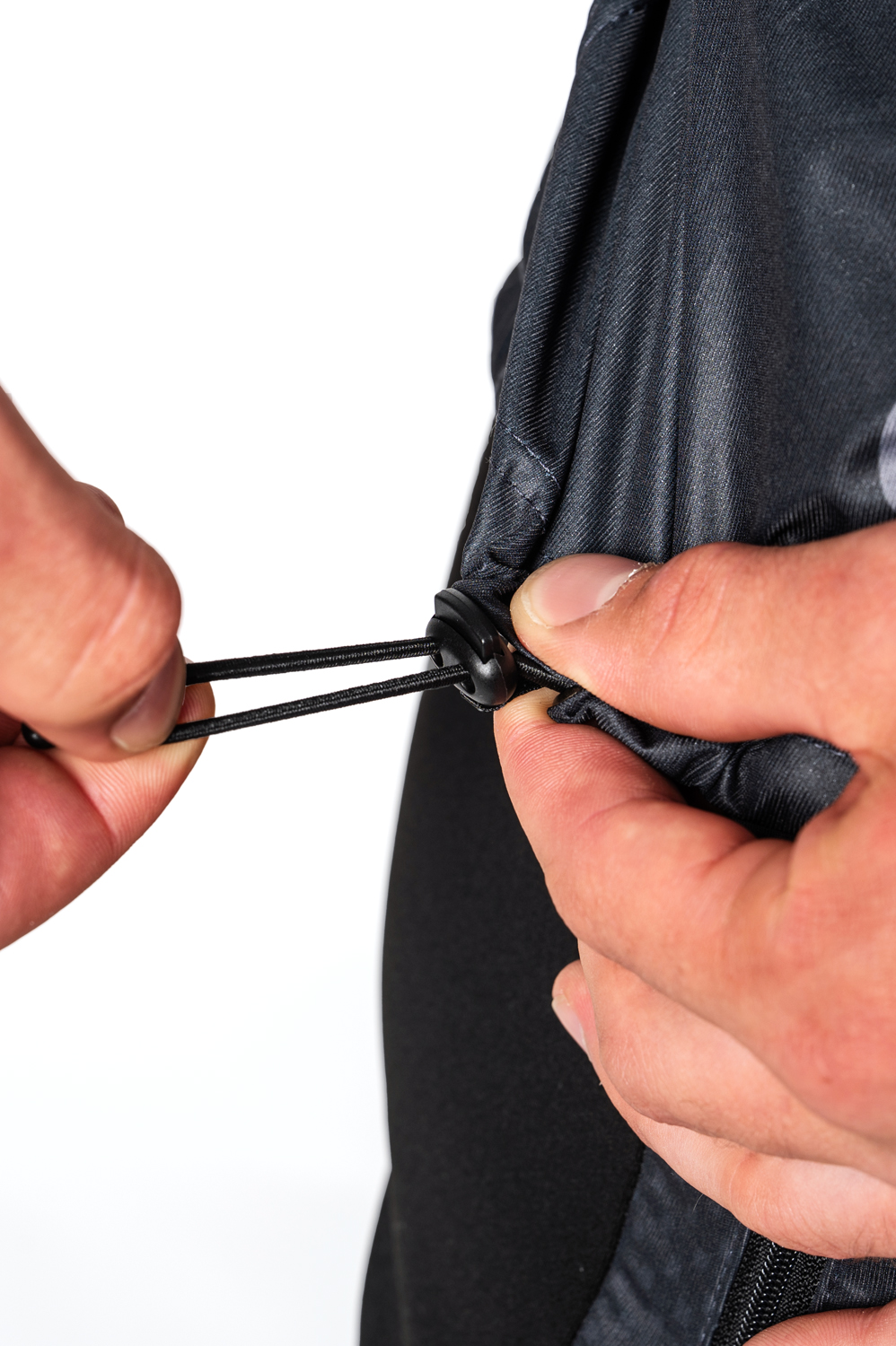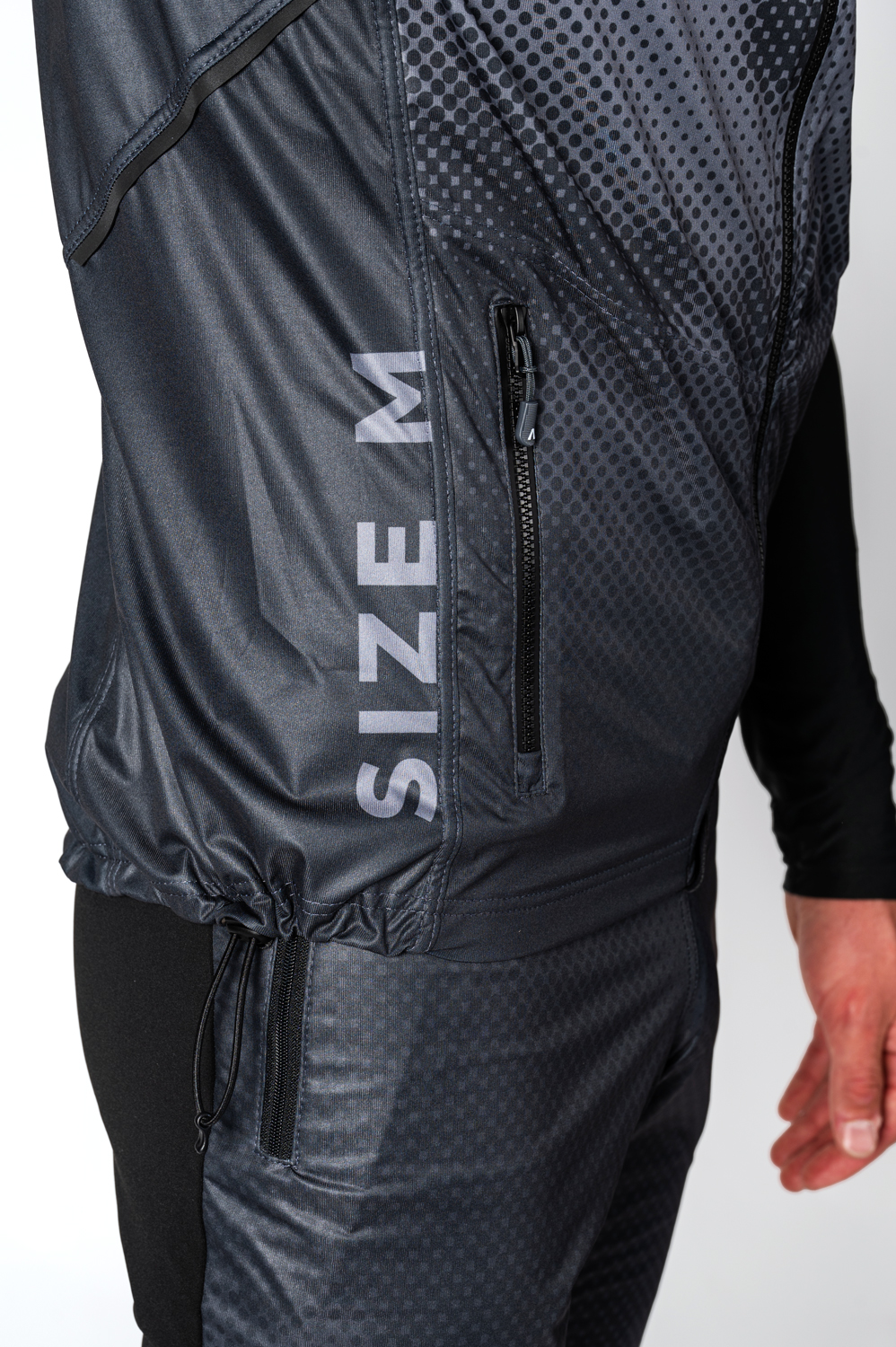El chaleco de running ELITE tiene un corte semi entallado y contorneado y está compuesto por múltiples piezas para garantizar la máxima comodidad y flexibilidad durante las actividades deportivas. En la parte delantera del chaleco hay una cremallera impermeable completa con tapones a ambos lados y dos bolsillos con cremallera para guardar objetos pequeños. Las sisas están forradas con un suave elástico. El borde inferior del chaleco está curvado e incluye un cordón ajustable. Los elementos reflectantes aumentan la visibilidad y garantizan la seguridad durante las actividades deportivas.