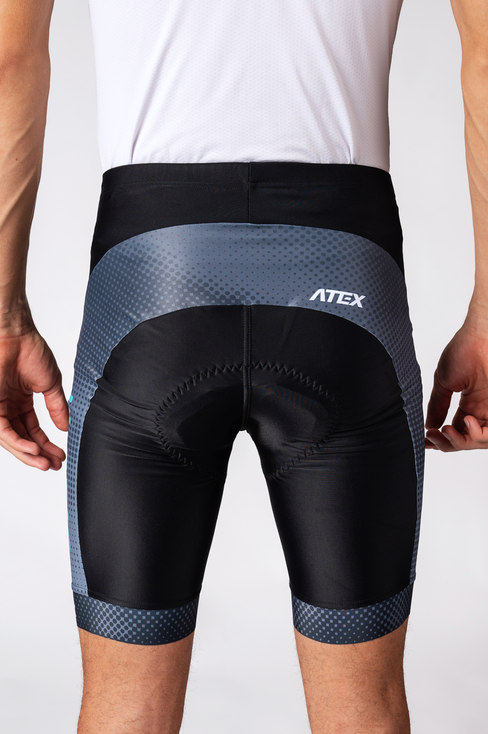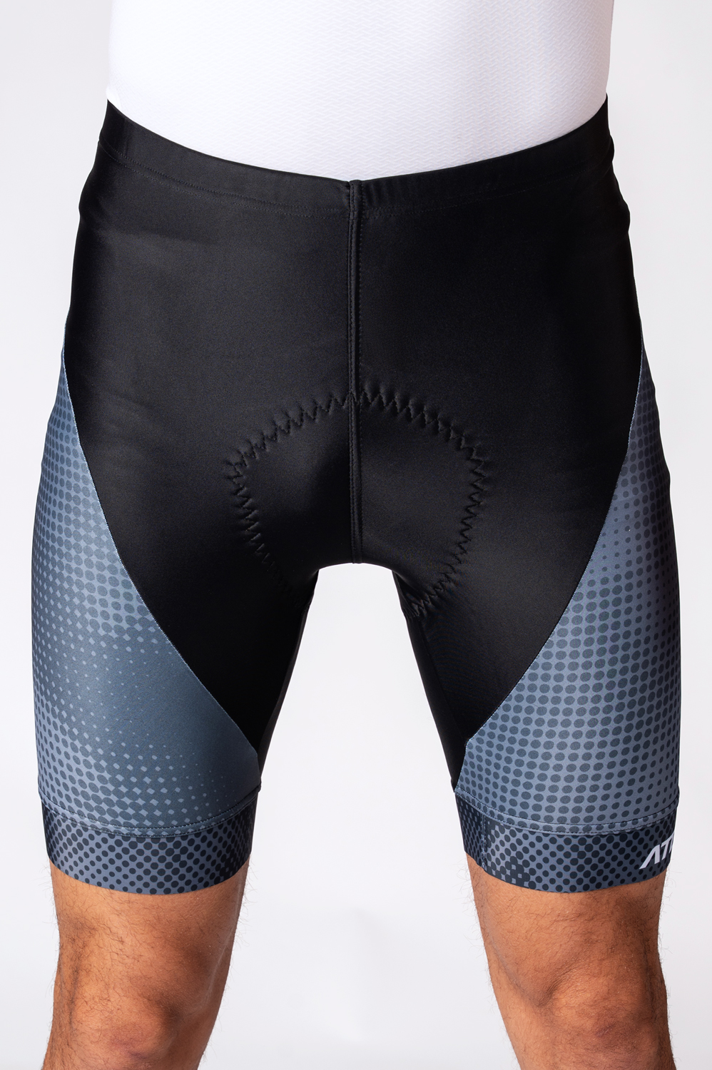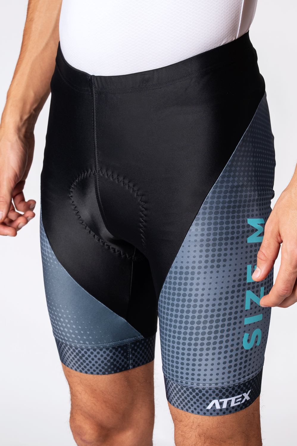 The cycling shorts with wide elastic waistband include Profi pad as a standard. Legs are finished with wide silicone gripper that can be printed on. Wide one-piece U-shaped panel is seamless. It is possible to add reflective details at your request or your own design on grey areas as seen in the picture.