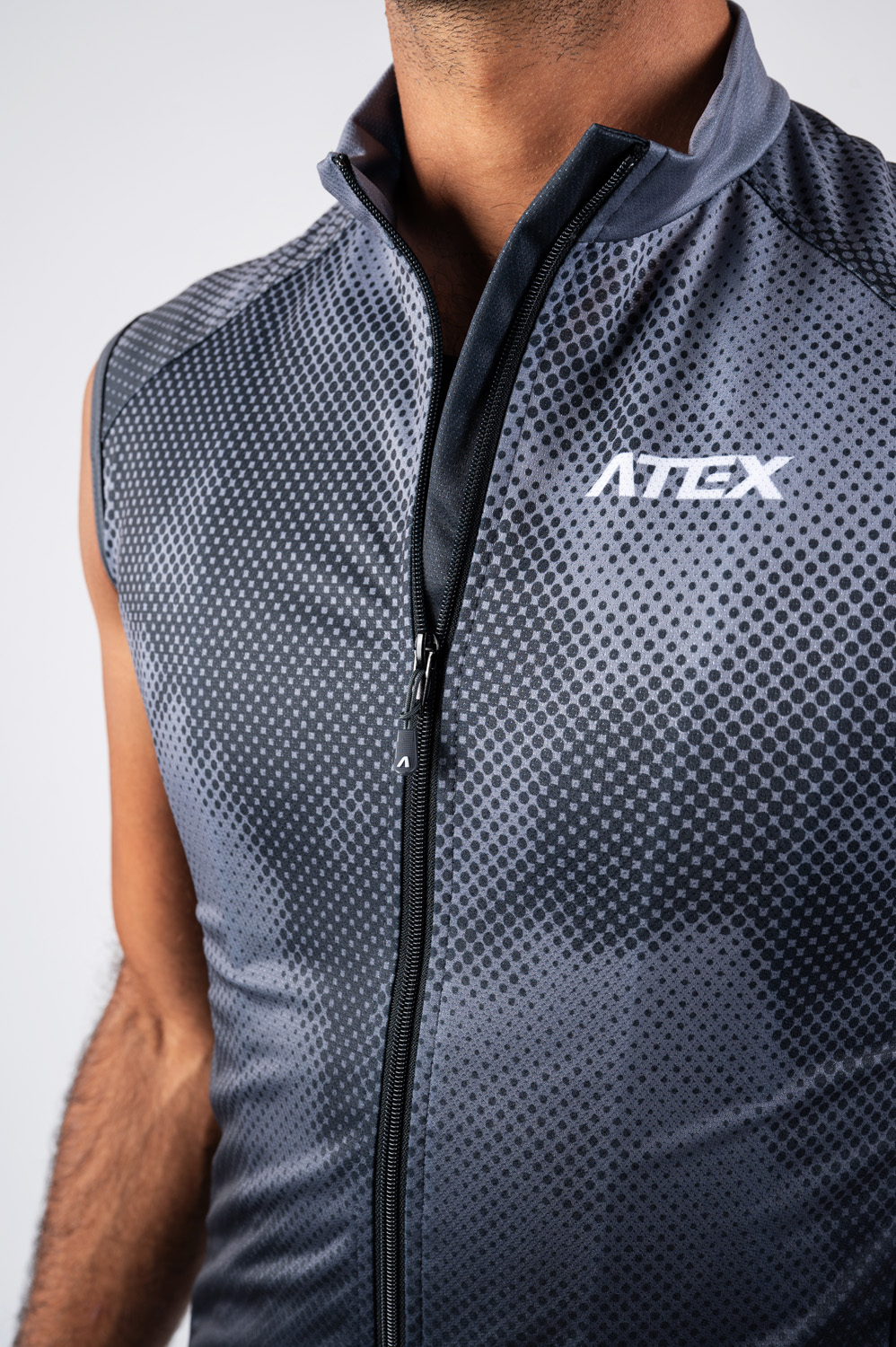 The lightweight cycling gilet is made from three materials. The basic one is a light membrane Windproof Soft material resistant to wind and moisture. The side panels are made from Espan material for more flexibility and the back part from stretch and breathable mesh material Mesh Bike. Gilet is in a semi-fitting design and other advantages are full-length underlaid zip, triple rear pocket, reflective details at the back and silicone grippers on bottom hems.