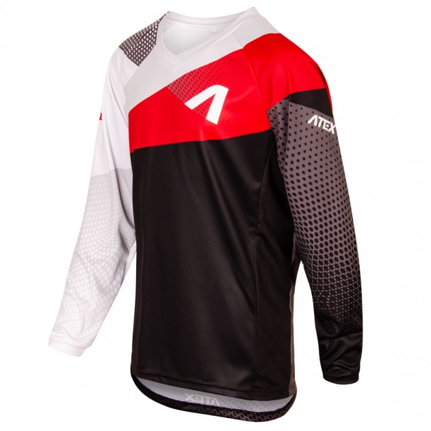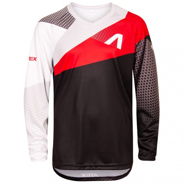 Kids BMX jersey is in a loose design and could be worn over the protectors. It is made from breathable material Polyester light with increased abrasion resistance and the sides are from material Asteria for better elasticity. V-neck, long raglan sleeves with narrow cuffs and elastic sides. The bottom hem is folded without rubber. Reflective details at your request.
