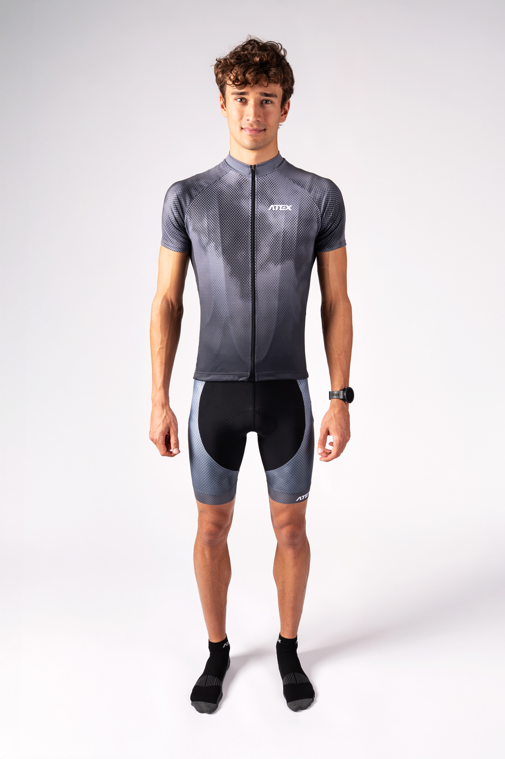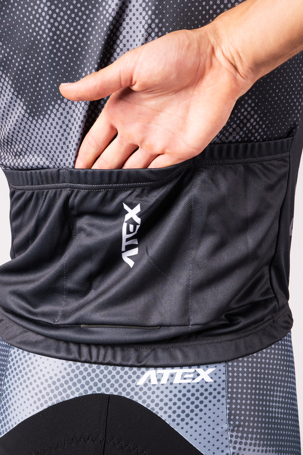 El maillot cuenta con una cremallera larga de doble sentido; en la parte trasera hay un bolsillo de tres compartimentos para guardar lo imprescindible, complementado con elementos reflectantes para una mayor seguridad en condiciones de baja visibilidad. El dobladillo inferior cuenta con una banda de silicona antideslizante que mantiene el maillot bien sujeto incluso durante el movimiento intenso. Si lo deseas, el maillot se puede personalizar: por ejemplo, elegir una cremallera más corta o de dos tercios en la parte delantera, añadir un cuarto bolsillo con cremallera en la espalda o incorporar un acabado antideslizante en los puños para una estabilidad aún mayor.