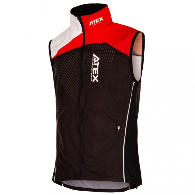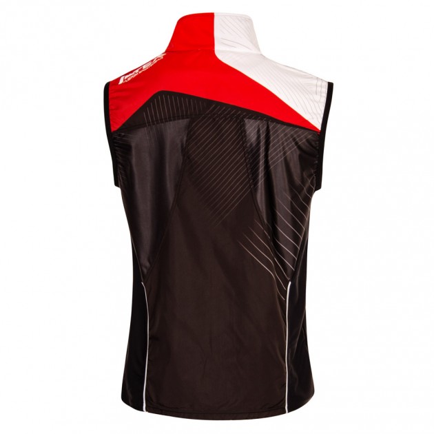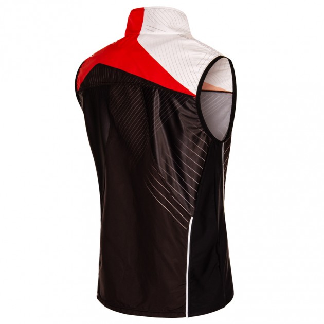 The lightweight sports gilet is designed for orienteering thanks to its suitable combination of materials. Main panels are made from a very lightweight Luvia material that has a hydrophobic coating and secures optimal resistance to outer moisture. Side panels and shoulder blade panels are from a stretch Espan material allowing a full range of movement for the athlete and quick adaptation to body shape. Gilet is in relaxed fit and taken-in shape. Full length zip on the front part with covers at both ends, two zip pockets, stand-up collar underlaid with soft material and underarms finishing with edging elastic come as standard. Bottom hems are turn-up and include adjustable elastic with a stopper. Distinctive reflective strips on the front and back panels increase security of the runner in low light.