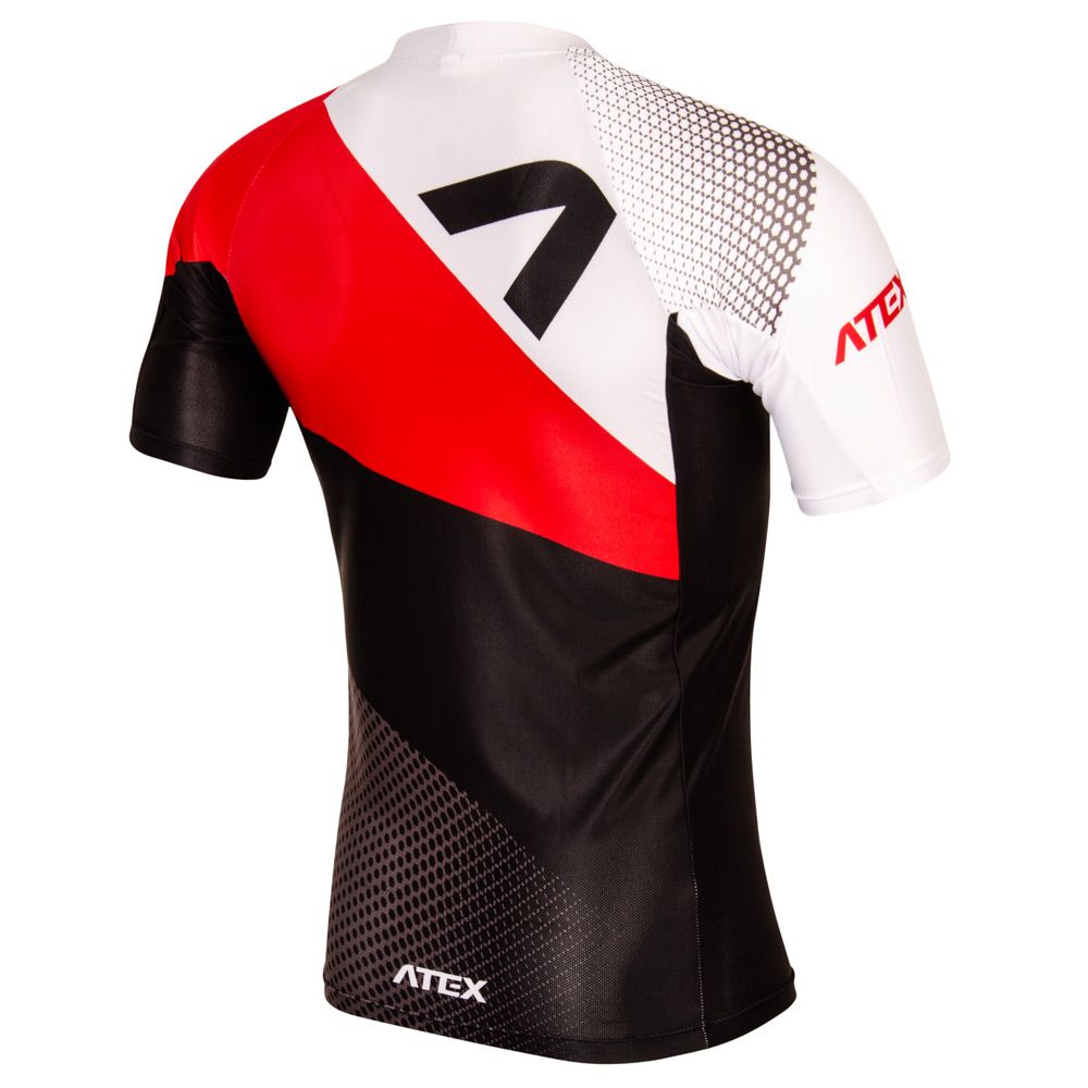 The rowing jersey with round neckline has short raglan sleeves. Specially shaped side panel that continues up to the sleeves are without seams in the armpit area. Design is close-fitting and narrow. Material Sale is very stretch, soft, lightweight and with a fine perforated structure. Its main property is good sweat absorption and quick drying.