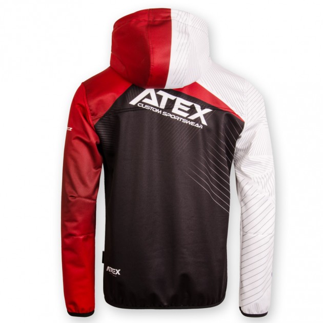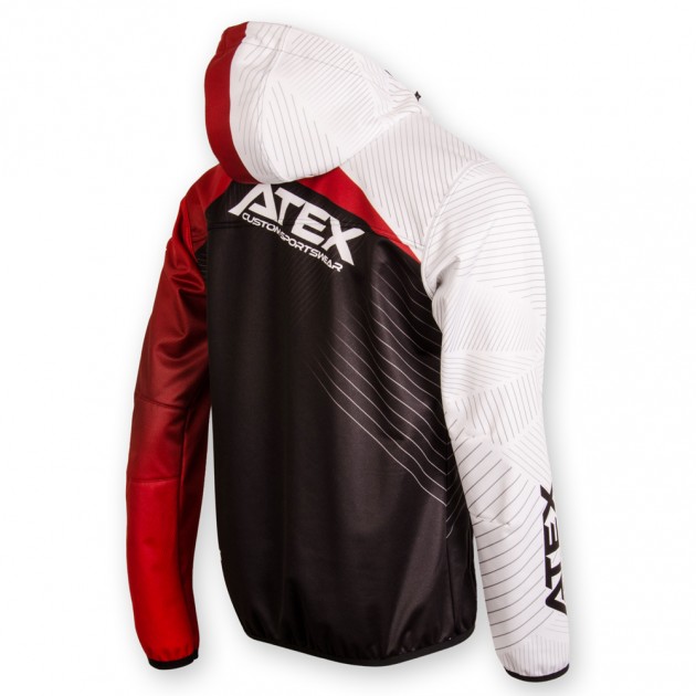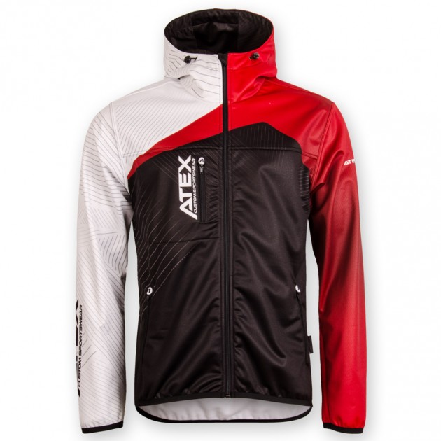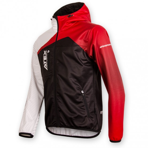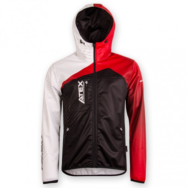 The sports jacket is made from three-layer Zerowind material. Front panel has underlined full-length zip with cover, sleeves and lower bottom of the jackets are finished with an elastic. It has one zip pocket at the front and two side zip pockets. Hood can be regulated with drawstring and inner lining of the hood can be printed on. Reflective details or cuff finishing can be added at your request. We can also produce the jacket without hood and with stand-up collar instead. Upon your request we can also make more simplified version of it with only top front part is printed and back together with other parts are in one colour.