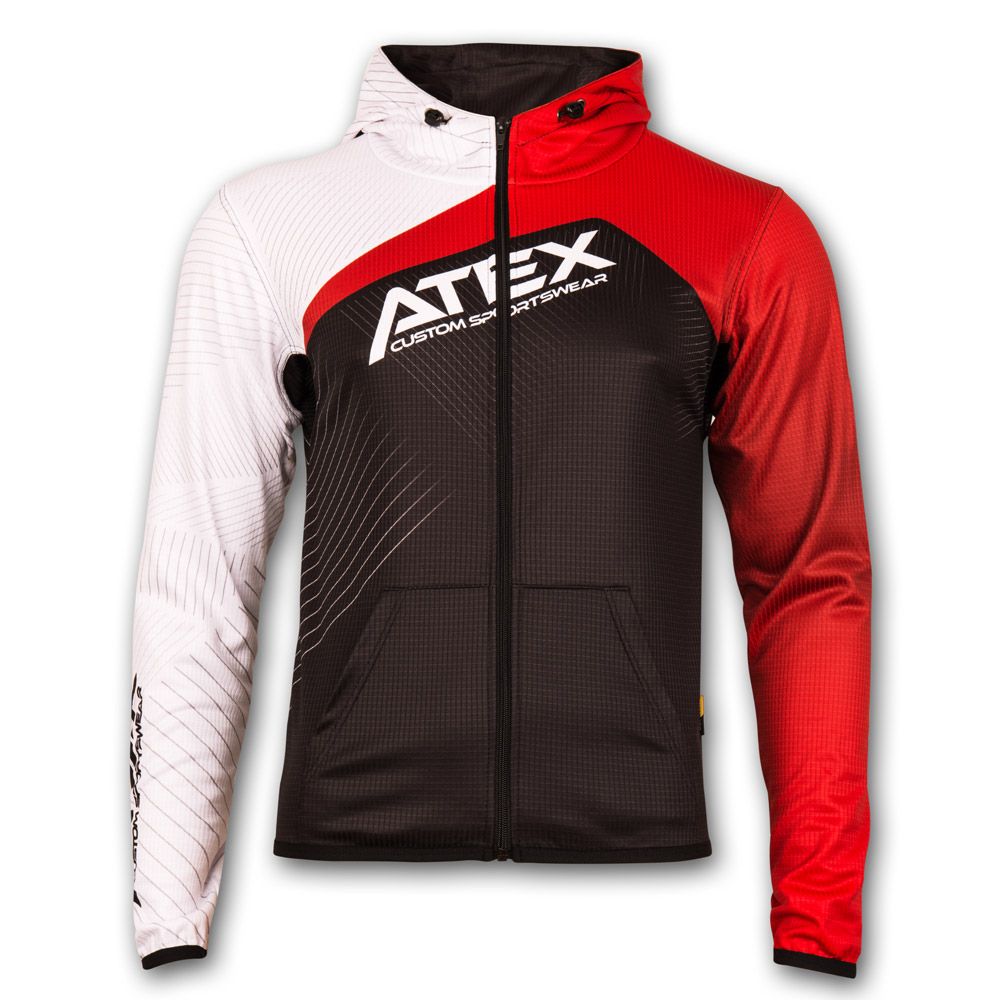 The lightweight sports sweatshirt is in universal relaxed fit and made in combination of two materials. The basic is lightweight, soft, quick-drying Dryclim material, underarm panels are made from Mesh material for better breathability, flexibility and comfort while wearing. Hood is fully lined and equipped with drawstring. Front of the sweatshirt has a full length zip and two pockets, set-in sleeves, round mesh panel under arms for better ventilation, allowing full range of movement and minimises seams in case of layering under the sweatshirt. Sleeves and bottom hem are finished with edging elastic. Practical zip pocket on the sleeve or reflective details can be added at request.